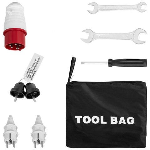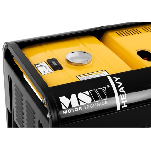 Agregat prądotwórczy diesel marki MSW generuje prąd o napięciu 230/400 V. Przydaje się we wszystkich miejscach bez dostępu do energii elektrycznej, np. na placach budowy, otwartych przestrzeniach itp. Wysoka wydajność to zasługa maks. mocy 4,4 kW. Wyjście znamionowe wynosi 50 Hz, 5,5 kVA. Wyposażono go w zbiornik paliwa o pojemności 12,5 l. Czas pracy ciągłej to 7,5 h (50 Hz). 1-cylindrowy, 4-suwowy silnik diesel HP186FAE ma rozruch elektryczny. Jest chłodzony powietrzem. Jego moc wynosi 5,5 kW (7,5 PS). Agregat prądotwórczy posiada 3 gniazda: 400 V, AC 230 V i DC 12 V. Dzięki nim możesz zasilać kilka różnych maszyn, nawet równolegle. Na wskaźniku w dowolnym momencie odczytasz dane napięcia w czasie rzeczywistym. Generator można włączyć za pomocą elektronicznego rozrusznika (akumulatory są zawarte w dostawie). Bezpieczeństwo obsługi zapewniająstopień ochrony IP23 i ochrona przed przeciążeniem. Duża mobilność to zasługa poręcznych uchwytów i kółek.