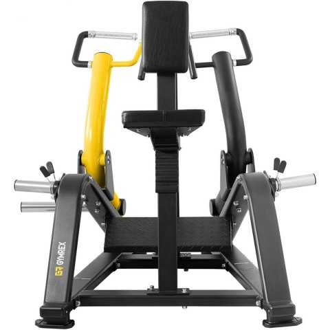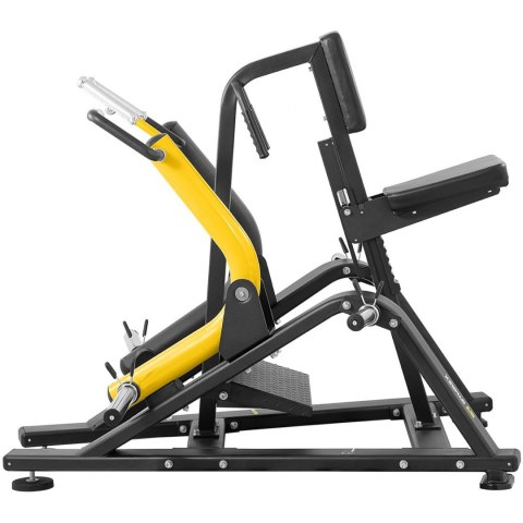 Maszyna do treningu pleców marki Gymrex idealnie sprawdzi się w studiu fitness lub domowej siłowni. Konstrukcja została wykonana ze stali malowanej proszkowo. Maszyna do treningu pleców jest niezwykle stabilna i może wytrzymać maksymalne obciążenie użytkownika do 135 kg. Dzięki temu nadaje się do szerokiej gamy metod treningowych dla sportowców o różnej sile, niezależnie od tego, czy są początkującymi, czy profesjonalistami. Sprzęt posiada również ergonomiczne uchwyty. Siedzisko maszyny jest wykonane z pianki wyściełanej skórą, dzięki czemu można wygodnie usiąść podczas treningu.
