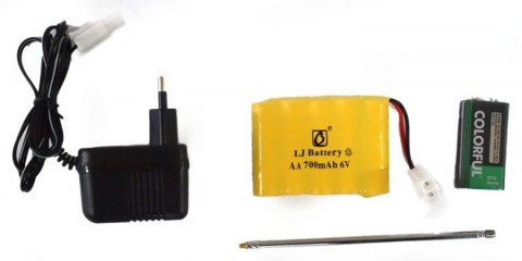 - Zasilanie samochodu: akumulator 6V NiCd 700mAh Tamiya