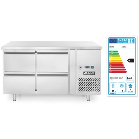 Stół chłodniczy wyposażony został w 4 szuflady i agregat boczny. Doskonały do przechowywania żywności oraz przygotowywania potraw.