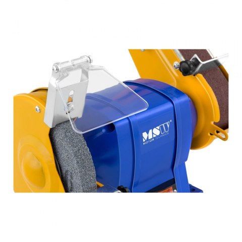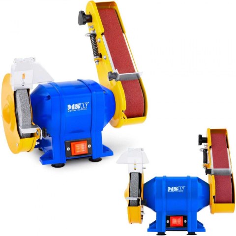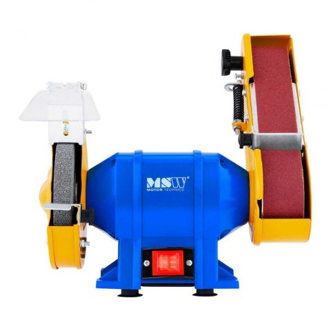 Praktyczna szlifierka taśmowo-tarczowa MSW dzięki swojej konstrukcji pozwoli na dwa sposoby szlifowania na jednej maszynie. Kamienna ściernica (śr. 150 mm, ziarnistość 36) i taśma szlifierska (szer. 50 mm, ziarnistość 80) znajdą zastosowanie przy polerowaniu, ostrzeniu czy przecinaniu różnych materiałów. Ściernicę i pas można samodzielnie zdemontować i wymienić na inne o tych samych wymiarach.