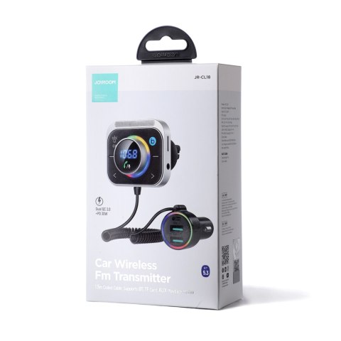 Joyroom JR-CL18 to połączenie transmitera FM z ładowarką samochodową. Produkt zwiększy Twój standard podróżowania! To urządzenie wielofunkcyjne, które posiada łączność FM/BT, możliwość podłączenia pamięci flash z muzyką, AUX oraz porty szybkiego ładowania. Wyświetlacz LED na pokrętle i podświetlane elementy pozwalają na łatwą lokalizację urządzenia podczas jazdy.