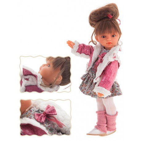 Firma Antonio Juan specjalizuje się w produkcji lalek o wyglądziei w dotyku przypominającym prawdziwe dzieci.Lalki Antonio Juan to gwarancja doskonałej jakości wykonania.Wytwarzane są ręcznie 100% w Hiszpanii.Kupując tę lalkę mogą być Państwo pewni, że jest to produkt markowy, spełniający restrykcyjne normy dotyczące bezpieczeństwa zabawek CE.Hiszpańskie lalki Antonio Juan zachwycają swoim wyglądem, dotykiem, a przede wszystkim bardzo wysoką jakością wykonania. Firma Antonio Juan dołożyła wszelkich starań, aby zapewnić Twojej córeczce wspaniałych i niezapomnianych wspomnień po zabawie laleczką.LALKA: Emily Chaqueta ModernaNr katalogowy: 25195Emily Chaqueta 25195 ubrana w sukienkę i kurteczkę.Lalka została w całości wykonana z najlepszego hiszpańskiego winylu, niezwykle delikatnego w dotyku. Emily ma przepiękne, wyglądające jak prawdziwe brązowe oczka z rzęsami oraz brązowe włoski.Emily Chaqueta posiada: - sukienkę,- kokardkę we włosach,- kurteczkę,- rajstopy,- buciki, - ocieplacze na nogi,- oryginalny i elegancki firmowy kartonik.Wysokość lalki: 33cm 25195