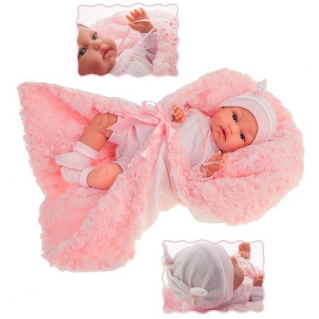 Rodzinna firma Antonio Juan produkuje lalki od czterech pokoleń. Połączenie tradycji, nowoczesności i ręce najlepszych ekspertów, specjalistów sztuki produkcji zabawek pozwoliły rozwinąć oryginalną markę, dzięki czemu firma może zaoferować produkty najwyższej jakości. Lalki Antonio Juan są w 100% wyprodukowane w Hiszpanii. Firma dba o każdy detal podczas procesu produkcji. Również ubranka są w ręcznie robione w Hiszpanii. Dzięki temu lalki Antonio Juan gwarantują doskonałe wzornictwo oraz materiały najwyższej klasy. HISZPAŃSKA LALKA DZIEWCZYNKA - 34 CM INFORMACJE O LALCE Lalka jest w 100% wyprodukowana w Hiszpanii przez rodzinną firmę Antonio Juan , która poświęca dużo czasu, by każdy element lalki zrobiony był jak najdokładniej.  Po naciśnięciu na brzuszek laleczka zaczyna wypowiadać swoje pierwsze słowa. Brzuszek lalki zrobiony jest z miękkiego materiału, w którym umieszczono bezpieczny moduł dźwiękowy. Nóżki, rączki oraz główka lalki wykonane są z przyjemnego w dotyku winylu.  Miękki brzuszek sprawia, że jest idealną lalką do przytulania. Jest też lżejsza od lalek w całości zrobionych z winylu, więc z powodzeniem mogą się bawić nią mniejsze dzieci. Lalka ubrana jest w urocze ubranka i ma ze sobą kocyk, na którym może ułożyć się do spania. W KOMPLECIE ZNAJDZIESZ  Lalkę dziewczynki z miękkim brzuszkiem Ubranka (koszulkę, spodenki, skarpetki i czapeczkę) Kocyk Smoczek Oryginalne pudełko  SZCZEGÓŁY LALKI Wzrost:  34 cm  Wymiary pudełka:  43,8 cm x 24,6 cm x 12 cm Waga: 420   g Baterie: 3x LR44 (w zestawie) Zabawka przeznaczona jest dla dzieci powyżej 3 roku życia.  Posiada certyfikat CE.  Lalkę należy czyścić wilgotną szmatką, nie należy jej kąpać.  70030