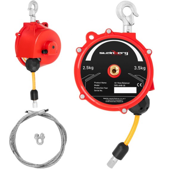 Balanser marki Steinberg Systems pozwala utrzymać ciężki sprzęt roboczy w warsztacie, produkcji seryjnej czy na hali montażowej. Urządzenie utrzymuje narzędzia pneumatyczne o wadze 2,5-3,5 kg w pozycji ich pracy, dzięki czemu narzędzia można prowadzić łatwiej i dokładniej oraz bez wysiłku. Obudowa balansera wykonana została z solidnej i trwałej stali, która wytrzymuje nawet intensywne użytkowanie. Wąż poliestrowy bezpiecznie podtrzymuje narzędzie pneumatyczne podczas montażu i innych prac. Urządzenie zasilane jest sprężonym powietrzem o ciśnieniu roboczym 10 bar (maks. ciśnienie 60 bar). Odciążnik do sprężonego powietrza posiada złącze R3/8'', a do węża R1/4''. Balanser musi być zawsze obsługiwany pionowo, by móc optymalnie zrównoważyć ciężar. Wąż ma długość 1,3 m i zapewnia swobodę ruchów.