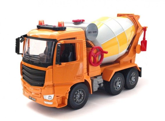 Prezentujemy Betoniarkę w skali 1:20 posiadającą otwierane drzwi, funkcję mieszania beczki za pomocą widocznego na zdjęciu pokrętła, zaś drzwi ciężarówki można otworzyć i zamknąć.