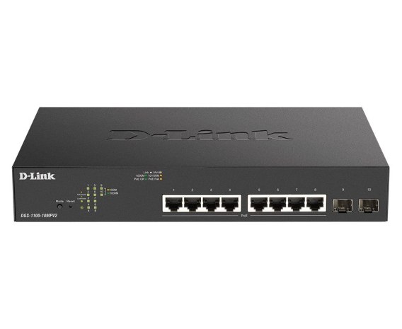 D-Link DGS-1100-10MPV2 Zarządzany L2 Gigabit Ethernet (10/100/1000) Obsługa PoE 1U Czarny