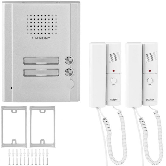 Domofon natynkowy do domu dwurodzinnego 2 słuchawki 100 m ZESTAW