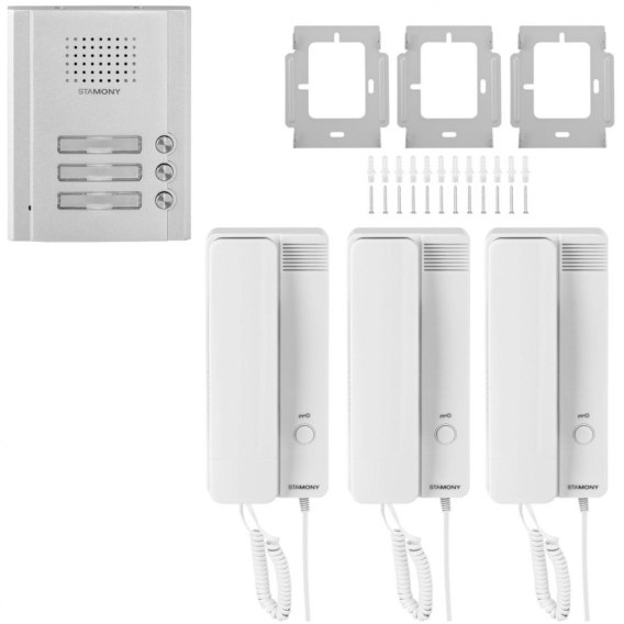 Domofon natynkowy do domu trzyrodzinnego 3 słuchawki 100 m ZESTAW