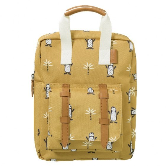 Fresk Plecak Pingwin Fresk to holenderski producent zachwycających zabawek, ubranek i akcesoriów dla dzieci produkowanych w zgodzie z ideą zrównoważonego rozwoju. Filozofią marki jest odpowiedzialne i przemyślane planowanie produkcji minimalizujące negatywny wpływ na nasze otoczenie. Fresk to połączenie uznanego wzornictwa i doskonałej jakości. Organiczne, naturalne materiały zapewniają komfort i ochronę środowiska. Charakterystyka Super cool plecak dla malucha. Doskonały na spacer i wycieczkę. Zapinany na zamek błyskawiczny, z dużą komorą i przegródką na napój. Zewnętrzna kieszonka zamykana na napy magnetyczne, regulowane szelki, wygodny uchwyt do trzymania. Wykonany z przetworzonych butelek PET oraz wysokiej jakości syntetycznej skóry. Wymiary w przybliżeniu: 28 x 21 x 8 cm. FB800-07