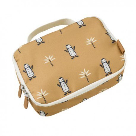 Fresk Śniadaniówka termiczna Pingwin Fresk to holenderski producent zachwycających zabawek, ubranek i akcesoriów dla dzieci produkowanych w zgodzie z ideą zrównoważonego rozwoju. Filozofią marki jest odpowiedzialne i przemyślane planowanie produkcji minimalizujące negatywny wpływ na nasze otoczenie. Fresk to połączenie uznanego wzornictwa i doskonałej jakości. Organiczne, naturalne materiały zapewniają komfort i ochronę środowiska. Charakterystyka Praktyczny lunch box termiczny, wykonany z wysokiej jakości materiału, pochodzącego z recyklingu. Wnętrze pudełka wyłożone jest specjalnym materiałem termoizolacyjnym, dzięki czemu jedzenie długo pozostaje świeże i smaczne. Lunch box posiada dużą komorę, w której z łatwością zmieszczą się kanapki, owoce, czy przekąski oraz małą przegródkę. Pudełko zamykane jest na suwak, posiada wygodny uchwyt do noszenia w dłoni. Wymiary w przybliżeniu: długość: 22 cm, głębokość: 15,5 cm, wysokość: 7 cm Skład: 100% poliester Czyszczenie i konserwacja: w razie potrzeby przetrzeć wilgotną szmatką, nie prasować, nie czyścić chemicznie, nie wybielać. Uwaga: Produkt nie jest zabawką. FB970-07