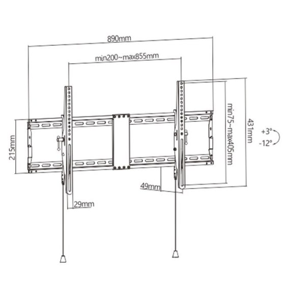 GEMBIRD UCHWYT ŚCIENNY REGULOWANY LCD 43-90 VESA MAX 800 X 400MM, DO 70KG