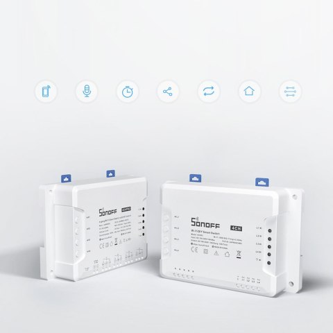 Inteligentny przekaźnik Wi-Fi Sonoff 4CHR3 kompatybilny z wieloma różnymi urządzeniami. Przełącznik oraz podłączone do niego urządzenia mogą być obsługiwane zdalnie przez aplikację eWeLink (Android / iOS).
