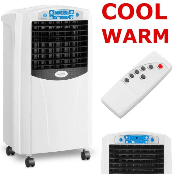 Dodatkowo model UNI_COOLER_03 wyposażony jest w funkcje ogrzewającą pracującą w dwóch trybach: niskie grzanie (1300 W) i grzanie maksymalne (1800 W). Umożliwia to wydmuchiwanie powietrza o temperaturze do 121°C z prędkością sięgającą 11,4 m/s. Wszechstronność klimatora połączona z jego niezwykłą wydajnością ułatwia szybkie i sprawne podniesienie lub obniżenie temperatury w pomieszczeniu.