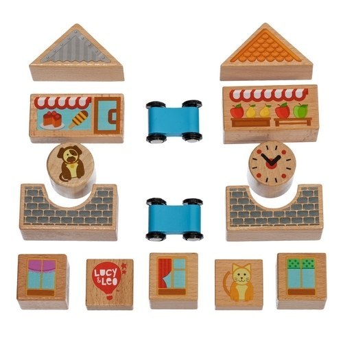 Kolorowe klocki drewniane - Miasto - 15 elementów Wymiary opakowanie: 16 x 12 x 10 cm Produkt przeznaczony dla dzieci od 3. roku życia. Posiada certyfikat CE. LL166