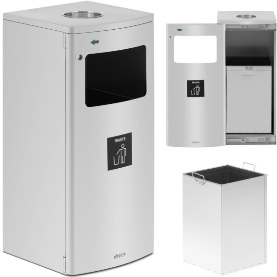 Kosz na śmieci marki Ulsonix sprawdzi się do utrzymania porządku wewnątrz i na zewnątrz. Wyposażony został w zintegrowaną popielniczkę. Wymiar przedmiotu wynosi 350 x 350 x 750 mm. Śmietnik wykonany został z wytrzymałej stali nierdzewnej i stali ocynkowanej. Posiada atrakcyjny wygląd i jest łatwy w czyszczeniu. Zebrane odpady łatwo wyjąć dzięki otwieranym drzwiczkom. Zamknięta góra uniemożliwia zaglądanie do środka.