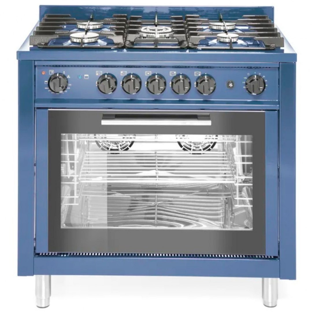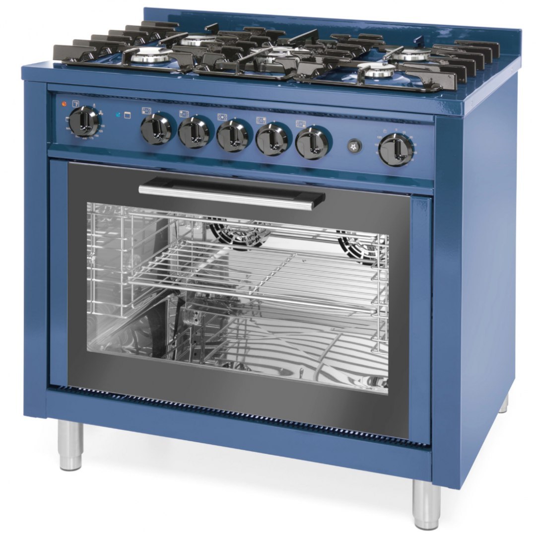 • Kuchnia gazowa 5 palników z piekarnikiem konwekcyjnym Kitchen Line 14.3 kW 230 V niebieska - Hendi 229194