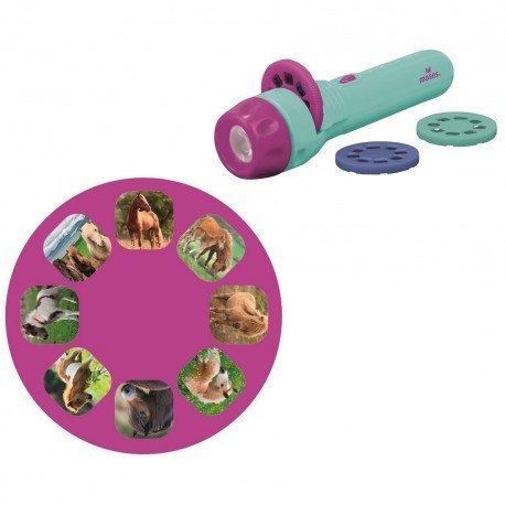 Latarka, Mini Projektor, Konie Wspaniały prezent dla fanów koni, niezwykły pokaz koni i kucyków, który możesz przenieść do pokoju dziecinnego za pomocą latarki - projektora. W tym celu należy włączyć latarkę, wsunąć kółeczko z przeźroczami w szczelinę powstałą po odciągnięciu ruchomej części i skierować na ścianę w zaciemnionym pokoju. Niezwykły pokaz. Wyświetla 24 obrazy, po 8 barwnych zdjęć (3 kółeczka z przeźroczami). Zawiera wizerunki koni i kucyków, nawet tych z mniej znanych ras: źrebięta Haflinger, kucyki szetlandzkie czy norweski koń fiordzki. Regulacja ostrości (pokrętło na froncie latarki). Idealna widoczność. Wymiary produktu: 12 cm x 3 cm x 3 cm. Wymiary opakowania: 13,5 cm x 8 cm x 4 cm. Przeznaczony dla dzieci powyżej lat 3. Nigdy nie świecić bezpośrednio w oczy. 38108