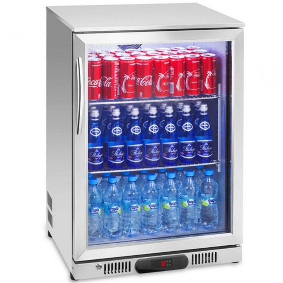 Lodówka na napoje Royal Catering idealny sprzęt do przechowywania napojów w chłodnej temperaturze oraz ich eksponowania (dzięki światłu LED). Model RCGK-138S sprawdzi się szczególnie dobrze w gorące dni, kiedy Twoi klienci będą mogli zobaczyć atrakcyjnie pokazaną ofertę soków, wody mineralnej, piwa itd. Możliwość eksploatacji w wielu miejscach to zaleta chłodziarki na napoje. Urządzenie Royal Catering zda egzamin w restauracjach, kawiarniach, barach z szybkim jedzeniem, lokalach z przekąskami, bistrach, sklepach, kioskach oraz na stoiskach gastronomicznych podczas imprez plenerowych.