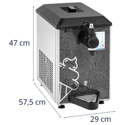 Maszyna marki Royal Catering pozwala przygotować bitą śmietanę w ciągu kilku sekund. Sprawdzi się do dekorowania kaw, lodów, deserów czy ciast w lodziarniach, restauracjach czy kawiarniach. Pojemnik mieści do 5 l płynu. Obsługa urządzenia jest bardzo prosta. Na jasnym ekranie dotykowym LED ustawia się żądaną wielkość porcji czy temperaturę. Podczas pracy wystarczy wybrać między dużą, średnią lub małą porcją. Można też ręcznie dodać tyle śmietanki, ile potrzeba. Automat ma funkcję samooczyszczania, która jest włączana jednym naciśnięciem. Urządzenie jest niezwykle łatwe w utrzymaniu i wymaga niewielkiej konserwacji. Wyjmowane elementy i wysokiej jakości materiały sprawią, że śmietaniarka jest trwałym i solidnym sprzętem. Maszyna stabilnie stoi na 4 gumowych nóżkach, które chronią powierzchnię przed zarysowaniem. Kompaktowa konstrukcja mieści się na każdym blacie, nawet w małej kuchni.