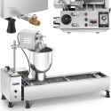 Urządzenie przystosowano do porcjowania, formowania, smażenia i obracania dużej liczby wypieków typu donut. Cały proces jest w pełni zautomatyzowany. Maszyna ma wysoką wydajność, do 900 pączków w ciągu jednej godziny. Do wyboru są trzy rozmiary: mały (śr. 4-5cm), średni (6-7cm), duży (8-9cm). 6-litrowy zbiornik na olej gwarantuje równomierne smażenie a kranik ułatwia zlewanie tłuszczu. Odpowiednia ilość uformowanego ciasta opada z dozownika na rozgrzany olej. Taśma przesuwa pączki a specjalny mechanizm obraca je na drugą stronę. Gotowe wypieki przerzucane są na podstawioną tackę (brak w zestawie). Maszyna formuje w tym samym czasie maksymalnie dwa pączki. Najważniejsze elementy maszyny wykonano ze stali nierdzewnej. Urządzenie posiada zabezpieczenie przed przegrzaniem. Regulowane nóżki zapewniają stabilność.