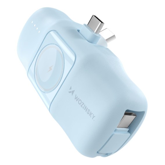 Mini powerbank 5000mAh 15W USB-C i ładowarką do Apple Watch - niebieski