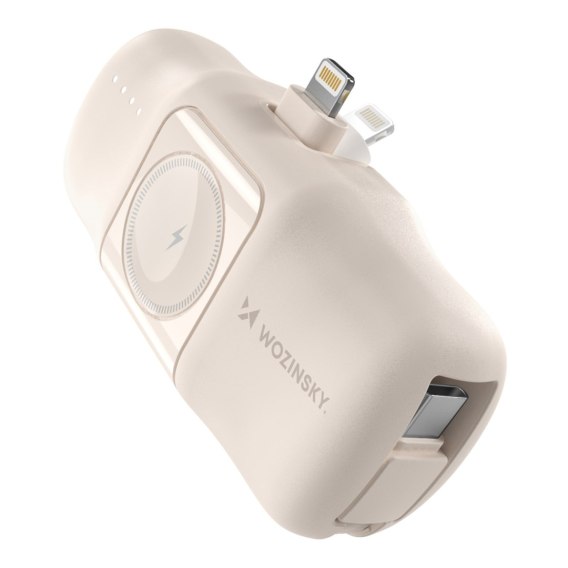 Mini powerbank 5000mAh 15W iPhone Lightning i ładowarką do Apple Watch - beżowy