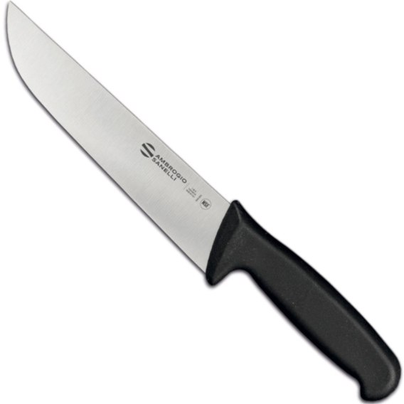 Nóż marki Ambrogio Sanelli z linii SUPRA to profesjonalne narzędzie przeznaczone dla szefów kuchni. Sprawdzi się w także w przetwórstwie mięsa. Posiada ostrze wykonane z wysokiej jakości stali nierdzewnej NITRO-B, w której dodatek cząsteczek azotu znacznie polepsza właściwości antykorozyjne oraz końcową twardość po ulepszaniu cieplnym. Ergonomiczny uchwyt wykonany został z trwałego tworzywa SEBS, które jest elastyczne i odporne na działanie czynników atmosferycznych, ozonu i UV. Nóż nadaje się do sterylizacji, jest wysoce odporny na uderzenia i korozję. Nie nadaje się do mycia w zmywarce.