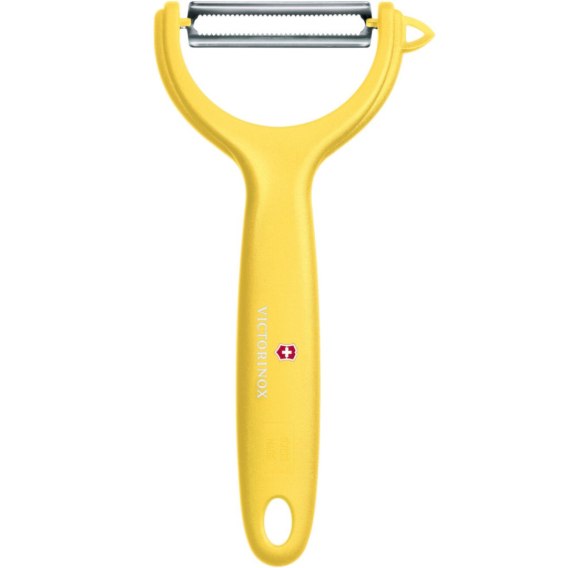 Obieraczka uniwersalna pozioma firmy Victorinox posiada gładkie, ruchome ostrze ze stali nierdzewnej. Pozwala szybko i sprawnie obrać warzywa i niektóre owoce. Obrotowe ostrze dostosowuje się do powierzchni cięcia. Uchwyt wykonany został z tworzywa sztucznego.