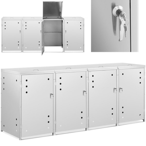 Osłona obudowa kosza kubła na śmieci poczwórna z okrągłymi otworami STAL 4x 240 l