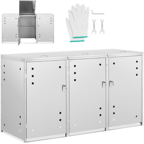 Osłona obudowa kosza kubła na śmieci potrójna z okrągłymi otworami STAL 3x 240 l
