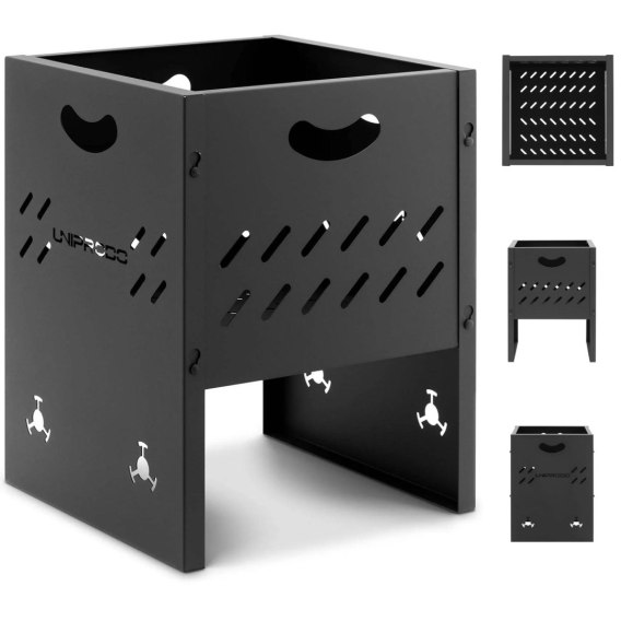 Palenisko marki Uniprodo dzięki składanej wtykowej konstrukcji sprawdzi się zarówno w ogrodzie, na tarasie, pikniku czy w podróży. Specjalny ruszt sprawia, że płomienie mają dużo tlenu do spalania, a dopracowany kształt pozwala na zsuwanie się drewna do środka żaru, gdzie spala się efektywniej i gwarantuje wysoki poziom ciepła przy niskim zużyciu. Palenisko zostało wykonane z powlekanej, ognioodpornej stali węglowej, jest niewrażliwe na ciepło, odporne na rdzę i inne czynniki zewnętrzne.