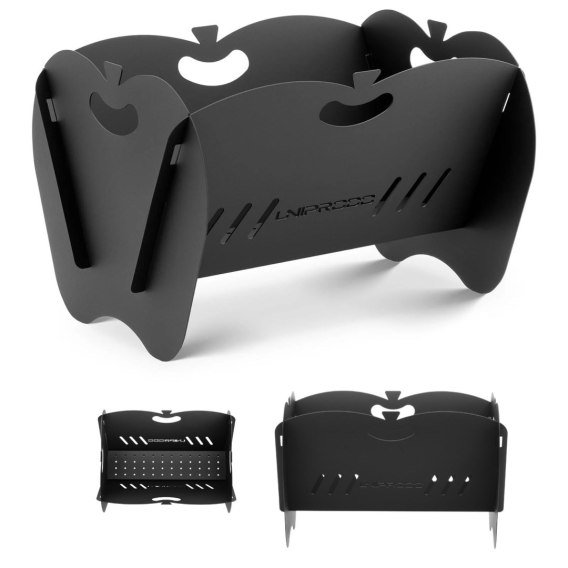 Palenisko marki Uniprodo dzięki składanej wtykowej konstrukcji sprawdzi się zarówno w ogrodzie, na tarasie, pikniku czy w podróży. Specjalny ruszt sprawia, że płomienie mają dużo tlenu do spalania, kształt litery V pozwala na zsuwanie się drewna do środka żaru, gdzie spala się efektywniej i gwarantuje wysoki poziom ciepła przy niskim zużyciu. Palenisko zostało wykonane z powlekanej, ognioodpornej stali węglowej, jest niewrażliwe na ciepło, odporne na rdzę i inne czynniki zewnętrzne.