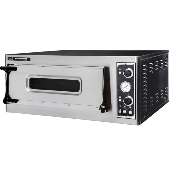Piec do pizzy firmy Prismafood umożliwia wypiek 1 pizzy ø320 mm. Przeszklone drzwi i wewnętrzne oświetlenie komory pozwalają na obserwację wypieku pizzy w komorze. Dno komory wyłożone jest szamotem dla szybkiego i równomiernego nagrzania komory. Urządzenie posiada oddzielone sterowanie temperaturą dzięki osobnym termostatom dla każdej grzałki. Komora posiada termometr. Front pieca wykonany został ze stali nierdzewnej.