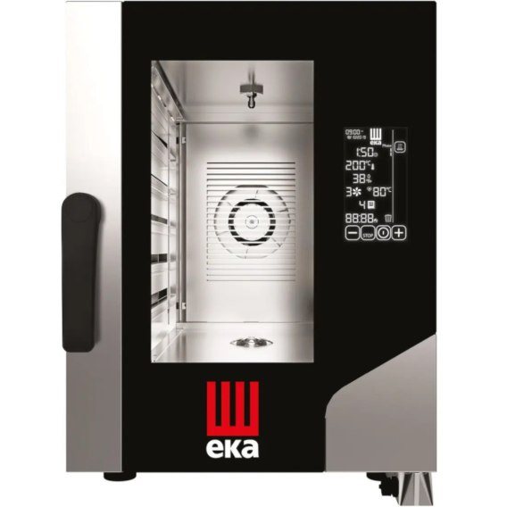 Piec konwekcyjno-parowy Millenial Black Mask Gastro marki Tecnoeka to urządzenie nowoczesne, wydajne i niezawodne, idealne do praktycznie wszystkich zastosowań w ramach gotowania i pieczenia. Seria pieców MILLENNIAL BLACK MASK COMPACT to tylko 500 mm szerokości, które sprawia, że piec zmieści się w każdej, nawet najmniejszej kuchni. Elektroniczny 7-calowy, dotykowy panel sterowania umożliwia wygodne i precyzyjne ustawienie żądanych parametrów gotowania Piece MILLENNIAL BLACK MASK posiadają dwa opatentowane rozwiązania: Airflowlogictrade; - to opatentowane i innowacyjne rozwiązanie polegające na całkowitym przeprojektowaniu deflektora (osłony wentylatora). Efektem tego zabiegu jest poprawa cyrkulacji przepływu powietrza