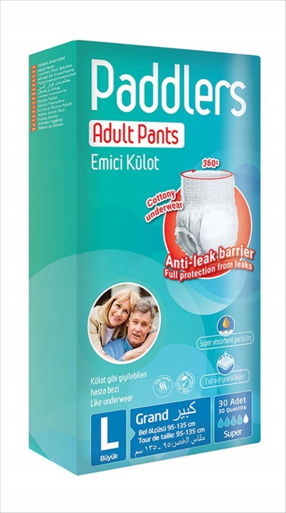 Pieluchomajtki dla dorosłych PADDLERS Rozmiar L, SUPER CHŁONNE, 30 szt.