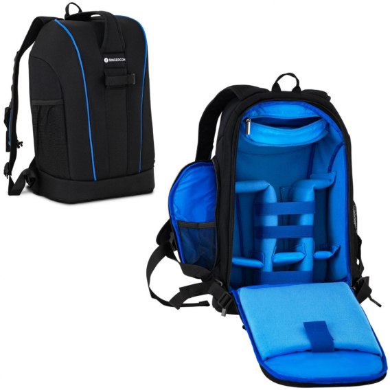 Plecak fotograficzny marki Singercon to doskonały produkt do bezpiecznego transportu aparatu fotograficznego wraz z akcesoriami. W tym celu zastosowano wewnątrz system przegródkowy, dzięki któremu możesz dopasować wnętrze do swoich potrzeb a także dodatkowo przymocować akcesoria za pomocą pasków z rzepami. Plecak został wykonany z mocnego poliestru jest w stanie wytrzymać obciążenie do 30kg. Zamek wyposażono w podwójny suwak a dołączony pokrowiec skutecznie chroni plecak przed deszczem.
