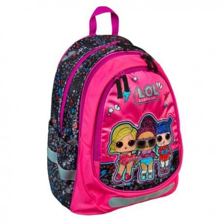 Plecak Szkolny z Odblaskami, LOL Surprise Plecak Szkolny z Odblaskami, LOL SurpriseDuży plecak szkolny z ergonomicznie zaprojektowanym miękkim tyłem zwiększającym komfort dla kręgosłupa i paskami odblaskowymi zapewniającymi bezpieczeństwo na drodze. Inspiracją jest tu największy zabawkowy hit ostatnich lat, LOL Surprise. Dzięki uroczym bohaterom szkoła może być fajna. Nieważne czy jesteś pierwszoklasistą czy piątoklasistą - potrzebujesz przyborów do szkolnej przygody. Duży plecak szkolny ozdobiony trójwymiarowym wizerunkiem laleczek LOL. Wizerunki wzbogacone brokatem. Ergonomicznie zaprojektowany miękki tył plecaka zwiększa komfort dla kręgosłupa. Dla zwiększenia bezpieczeństwa z przodu, po bokach i na szelkach, umieszczono doskonale widoczne paski odblaskowe. Wykonany szczególnie starannie i solidnie. W komorze głównej zamykanej na suwak z usztywnionym dnem, zmieszczą się wszystkie niezbędne przybory. Dwie obszerne kieszenie zamykane na suwak. Po obu bokach dodatkowe kieszonki na bidon lub lunch box. Plecak posiada uszko do wygodnego zawieszania. Szelki na ramiona wykonane z miękkiego materiału. Można regulować ich długość. Wymiary: 32 cm x 17 cm x 42 cm. LOLO7560