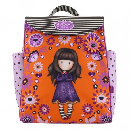 Plecak z Kieszeniami - Gorjuss - Cobwebs Firma Santoro London to producent niepowtarzalnych produktów, które zachwycą każdą dziewczynkę i niejednego dorosłego! Marka znana jest na całym świecie, a produkty sprzedawane są w najbardziej znanych i prestiżowych butikach. W najpopularniejszej z ich kolekcji - Gorjuss - znajdziecie przepiękne torebki, portfele oraz portmonetki, oryginalne artykuły papiernicze (notatniki, pamiętniki, długopisy, ołówki) oraz niepowtarzalne lusterka, balsamy do ust, szkatułki i wiele więcej! Kolekcja Gorjuss to wspaniały pomysł na wyjątkowy prezent z każdej okazji! Charakterystyka Plecak dla prawdziwej elegantki, idealny aby udać się w drogę. Praktyczny i stylowy w odcieniach królewskiej purpury i nasyconego pomarańczu. W części głównej kieszonka na telefon oraz kieszeń z suwakiem. Na zewnątrz zasuwana kieszeń. Po bokach 2 kieszenie na termos lub butelkę. Regulowane paski na ramiona. Uwaga: każda sztuka jest wykonana ręcznie, kolory oraz detale mogą się różnić. 923GJ01