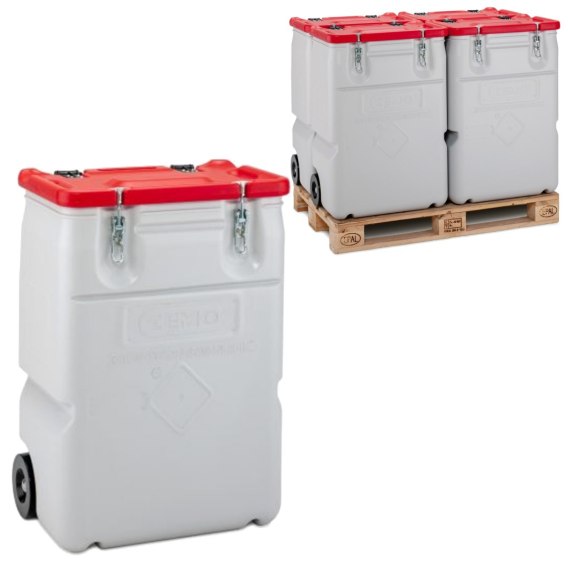 Wysokiej jakości, trwały pojemnik MOBIL BOX o stabilnej konstrukcji umożliwia czyste i bezpieczne składowanie stałych towarów niebezpiecznych należących do II lub III grupy pakowania, a także jest dopuszczona do transportu zgodnie z kodami ADR, RID i IMDG. Standardowy rozmiar w systemie palet EUR umożliwia przewóz aż 8 pojemników na 1 palecie 120x80cm. Koła zastosowane w pojemniku znakomicie ułatwiają jego przemieszczanie.