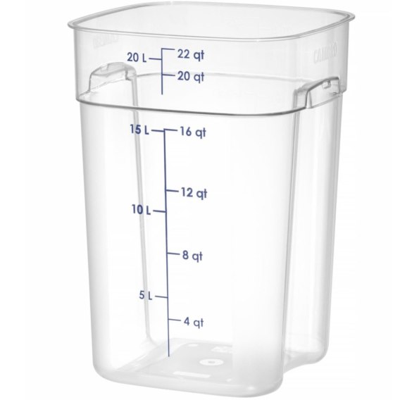 Pojemnik na żywność CamSquaresreg; Fresh Pro firmy Cambro to wielorazowe i przyjazne środowisku rozwiązanie pozwalające na wydłużenie czasu przydatności żywności. Nadaje się do mokrych i suchych produktów. Jest idealny do przechowywania ziół i przypraw, warzyw, mięs, owoców morza czy płynów. Wykonanie z poliwęglanu, materiału odpornego na odbarwianie się, kwasy spożywcze i zapachy, sprawia, że pojemnik jest niezwykle wytrzymały i tym samym doskonale się sprawdzi w profesjonalnych kuchniach. Teksturowana powierzchnia z boku, zaokrąglone rogi i ergonomiczne uchwyty zwiększają wygodę użytkowania. Pokrywki są sprzedawane oddzielne.