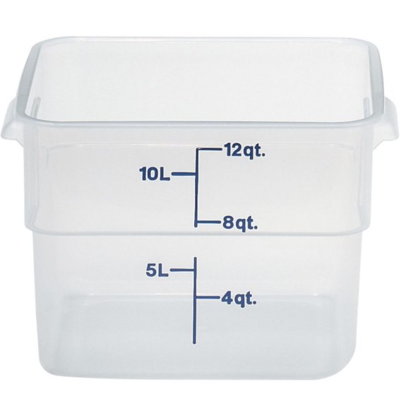 Przezroczysty pojemnik polipropylenowy na żywność CamSquarereg; marki Cambro doskonale sprawdza się w przechowywaniu różnego rodzaju produktów spożywczych i organizowaniu przestrzeni kuchennej. Dzięki dużej odporności termicznej można go umieszczać również w szafach chłodniczych.