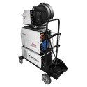 Do urządzenia dołączono chłodnicę wodną, która skutecznie chłodzi uchwyt. Zwiększa ona wydajność pracy i podnosi jej komfort. Ma także na celu ochronę elementów spawarki bezpośrednio narażonych na przegrzanie i wysoką temperaturę. Dla zapewnienia dodatkowej wygody do zestawu dodano również wózek spawalniczy ułatwiający transportowanie.