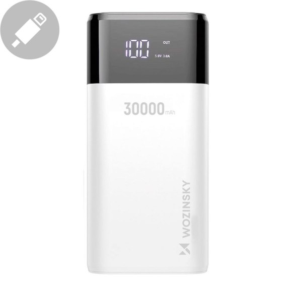 - Naładuje smartfon, smartwatch lub czytnik e-booków - i to nawet kilkukrotnie! Powerbank Wozinsky ma pojemność aż 30000 mAh. Naładowany w 100% zasili Twoje urządzenie nawet kilka razy,