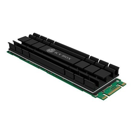 The principle is passive cooling for M.2 SSDs with a length of up to 80 mm and only 5 mm height, which results in more power; For an easy installation everything is included in the package: thermal pads and the cooling plate (IB-M2HS-701); First, the heat conducting pad is placed on the M.2 and the cooling plate is then placed on top of this; Due to the low height of the cooling plate, it does not interfere with the installation and thus dissipates the heat very quickly