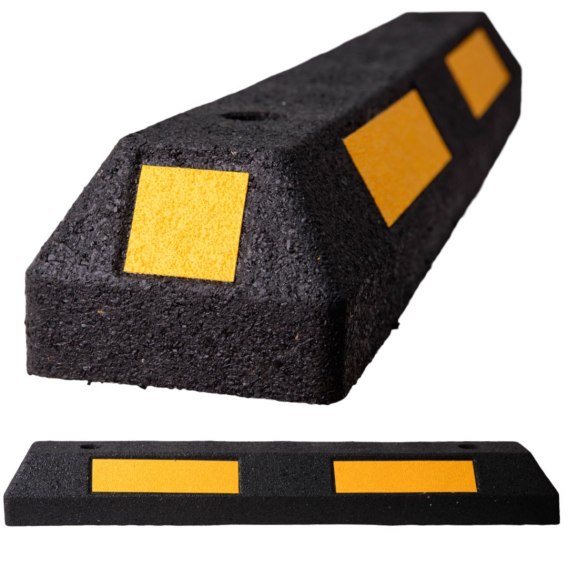 Wysokiej jakości, wytrzymały separator parkingowy wykonany z granulatu gumowego SBR. Ogranicznik parkingowy został wyposażony w taśmy odblaskowe z każdej strony oraz otwory do mocowania do podłoża.