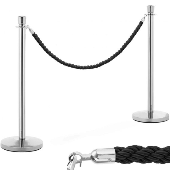 Słupek odgradzający hotelowy srebrny z czarną liną 150 cm - 2 szt.