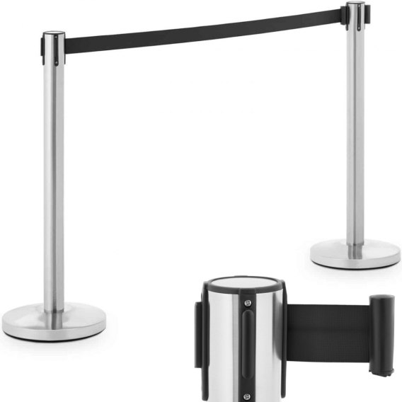 • Słupek odgradzający hotelowy srebrny z czarną taśmą 2 m - 2 szt.