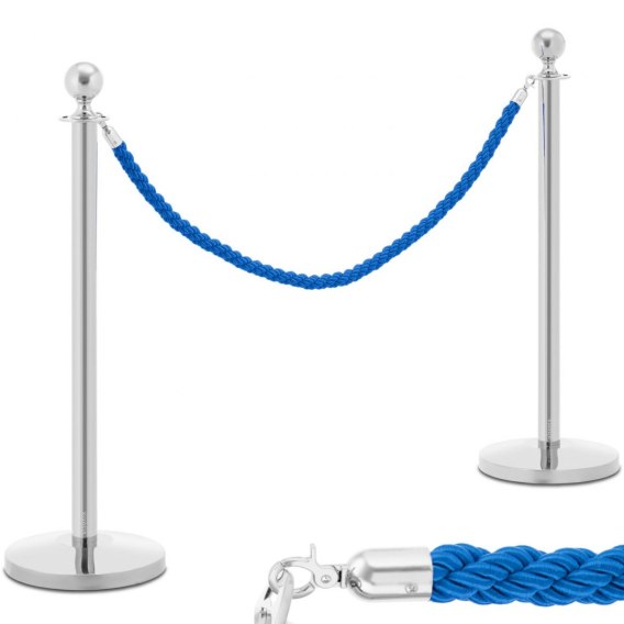 Słupek odgradzający hotelowy srebrny z niebieską liną 150 cm - 2 szt.