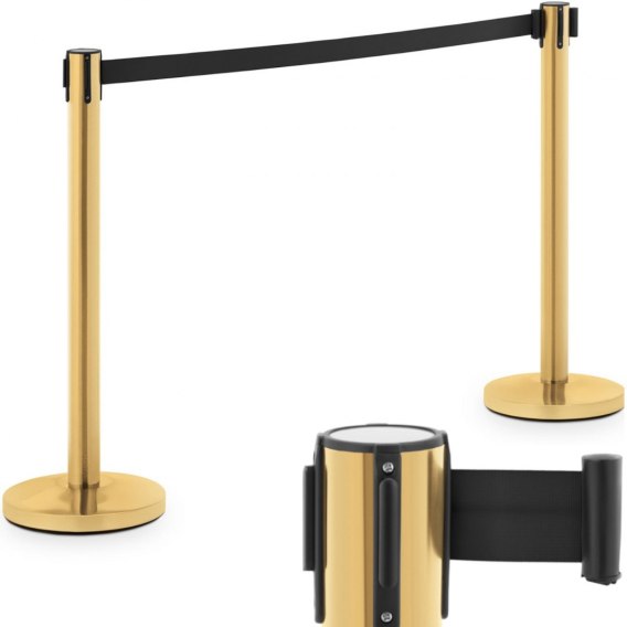 Słupek odgradzający hotelowy złoty z czarną taśmą 2 m - 2 szt.